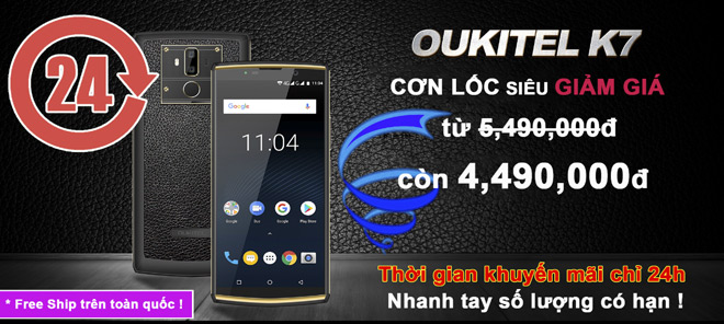 “Cơn sốt” smartphone pin 10.000mAh,Ram 4G,Rom 64G đã thật sự “làm mưa làm gió” trên thị trường công nghệ khi hãng quyết định bán chiến binh Oukitel K7 pin 10.000mAh với mức giá ngoài sức tưởng tượng của khách hàng. Và vì số lượng máy có hạn nên khách hàng chỉ có 24giờ đồng hồ đề sở hữu chiến binh Oukitel K7 pin 10.000mAh với mức bán khó tin là 4.490.000đ.