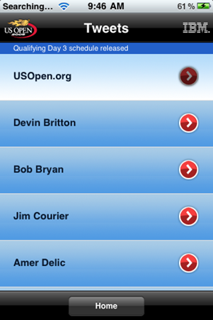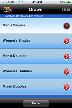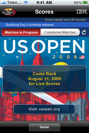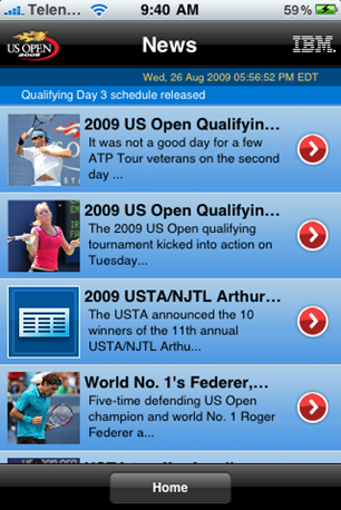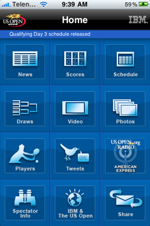 Features of 2009 US Open App: LIVE Scores and completed match results during the Open. Latest News updates from on and off the court throughout the tournament. USOpen.org Radio – American Express special feature – LIVE streaming radio and play-by-play Open coverage featuring Ask the Booth—a live, interactive Q&A with match commentators. On Demand Video, Around the Grounds and American Express insider player profiles and more. Tweets from the US Open official Twitter coverage, as well as featured players. Spectator Guide to the Open, featuring maps of the grounds, onsite American Express Cardmember benefits and other great spectator info. and more! The Official 2009 US Open Tennis Championships App. Home Screen with bunch of options to choose from. Latest News and updates from on and off the court throughout the tournament. Follow LIVE Scores and completed match results during the Open. Check out the schedule and draws for upcoming matches. Follow the action LIVE on twitter from tweets from the likes of Bob Bryan, Jim Courier, Andy Murray, Andy Roddick, Serena Williams and Venus Williams. Player profiles from the Open. Video: One of the best feature of the App, yes you can watch video highlights of the matches you have missed! Mã: [I] [URL="http://itunes.apple.com/WebObjects/MZStore.woa/wa/viewSoftware?id=327455869&mt=8"]Download[/URL] 2009 US Open App from the App Store for free (iTunes link) [/I]