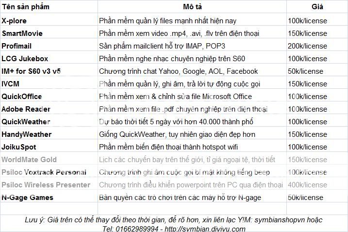 Bán license soft: X-Plore/S.Movie/Jukebox/Profimail/IVCM/QuickOffice/AdobeReader/IM+..