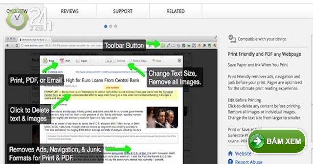 Lúc này, tiện ích sẽ tự động loại bỏ các thành phần không cần thiết. Tất nhiên, nếu muốn, người dùng vẫn có thể chủ động xóa bỏ những nội dung không cần thiết bằng cách bấm vào biểu tượng thùng rác. Cuối cùng, bạn chỉ nhấn Print và cấu hình thêm một vài thông số cơ bản.