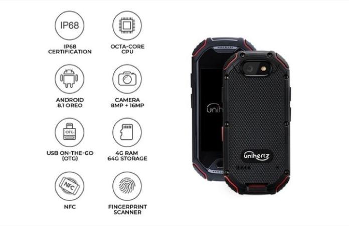 Theo The Verge, Atom có jack tai nghe 3.5mm, nút bấm gán tính năng tùy chỉnh ở cạnh phải, chuẩn chống nước/bụi IP68. Nhà sản xuất Unihertz cho biết bạn có thể dùng Atom để quay phim dưới nước.