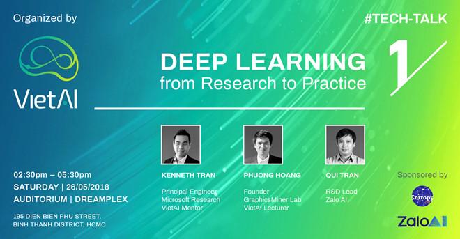 Diễn giả của buổi chia sẻ đều là những chuyên gia hàng đầu về A.I ở Việt Nam như ông Kenneth Tran – kĩ sư nghiên cứu tại Microsoft, đồng thời là mentor của tổ chức VietAI (tổ chức giáo dục phi lợi nhuận ra đời với sứ mệnh hỗ trợ và phát triển cộng đồng nghiên cứu A.I trong nước), ông Phuong Hoang – người sáng lập GraphicsMiner Lab, đội đã vào vòng 2 của cuộc thi AI Xprize do tập đoàn IBM tổ chức. Diễn giả cuối cùng của sự kiện đến từ Zalo A.I – Thạc sĩ Qui Trần, người đứng đầu nhóm nghiên cứu phát triển tại Zalo A.I.