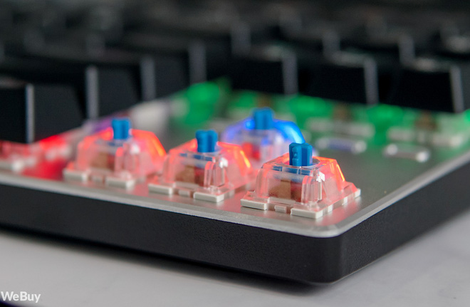 Ngoài ra, đây cũng là một chiếc bàn phím được làm theo phong cách hở switch, có nghĩa switch được đặt nổi lên khỏi bề mặt mà không có phần viền bao quanh, góp phần giúp ánh sáng đèn LED lan tỏa đẹp hơn nhưng cũng làm phía bên trong dễ bám bụi, dễ hỏng hóc hơn.