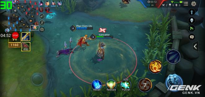 Chính vì thế mà game đã được đặt ở mức full setting nhưng vẫn không hề gây khó dễ cho chiếc Oppo F7. máy vẫn giữ mức khung hình ổn định khoảng 30 fps trong suốt trận đấu, kể cả khi có những giao tranh quyết liệt.