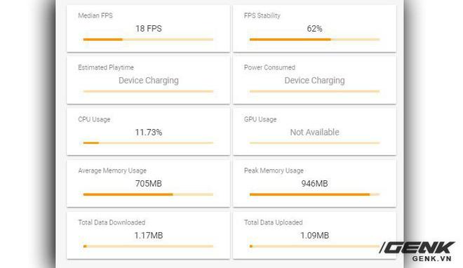 Các con số chấm điểm là vậy, nhưng trải nghiệm thực tế thế nào, chúng ta vẫn cần phải có trải nghiệm thực tế nhất để đưa ra đánh giá. Chúng tôi sử dụng phần mềm GameBench để đưa ra những đánh giá về lượng tiêu thụ CPU, RAM và số khung hình trên giây (FPS) trong suốt quá trình chơi 3 tựa game.