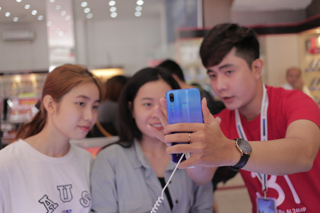 Khách đến nhận máy Nova 3i rất đa dạng về độ tuổi cho thấy sản phẩm đáp ứng tốt nhu cầu của số đông người dùng