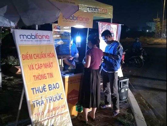 Điểm đăng ký thông tin lưu động của MobiFone phục vụ khách hàng đến tận đêm.