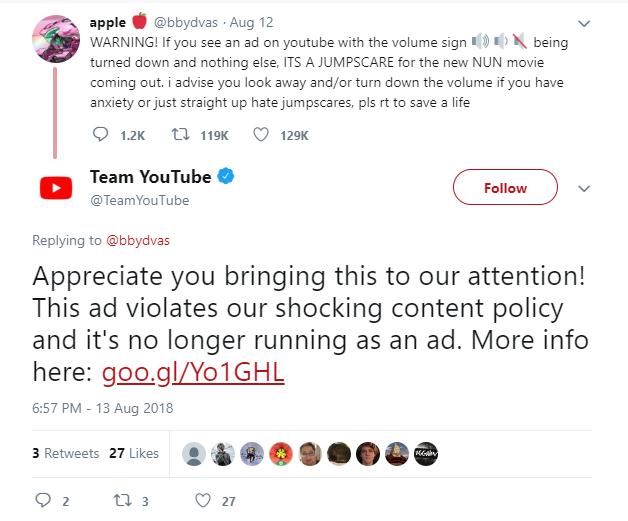 Khi bài đăng Twitter bay tới khắp nơi trong thế giới mạng, YouTube mới có tuyên bố chính thức: họ đã gỡ bỏ đoạn quảng cáo vi phạm chính sách sử dụng.