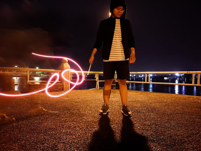 Không hề kém cạnh trong cuộc chơi đầy sáng tạo này, giới trẻ Việt tận dụng camera khẩu độ f/2.4 để tạo ra những bức ảnh phơi sáng rõ nét, sống động như đồ họa như “người bạn ánh sáng” trong hình