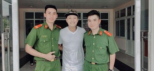 Tuấn Hưng chụp hình chung cùng các chiến sĩ công an sau khi đưa nạn nhân đi cấp cứu